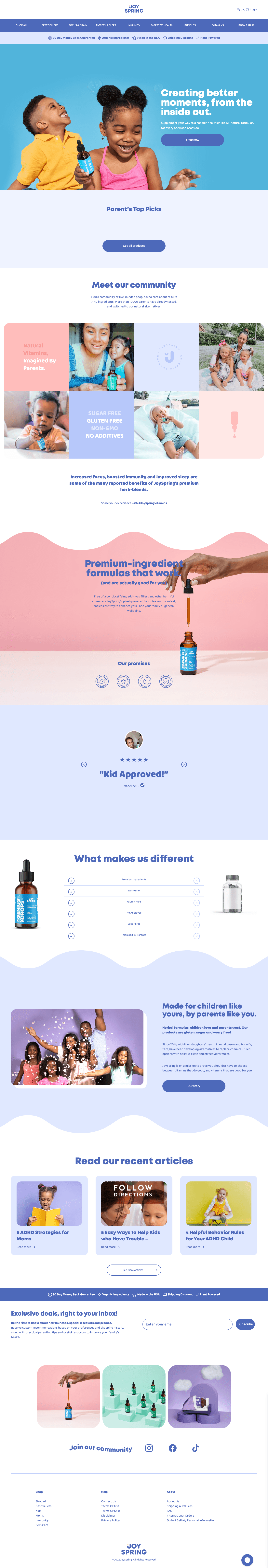 Apresentamos nosso trabalho de desenvolvimento de e-commerce para a JoySpring Vitamins, uma empresa líder no fornecimento de vitaminas e suplementos de alta qualidade para crianças. Utilizamos a plataforma Shopify como base e integramos o sistema de assinaturas da Recharge para oferecer uma experiência de compra personalizada e conveniente.